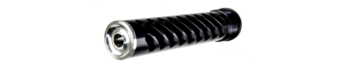 The Inland Monocore series suppressor is 7.5 inches in length and 1.5 inches diamete, weighing in at 19 oz. This monocore supressor is easily maintained requiring no special tools to service. The I-Core anodized aluminum monocore baffle system features the X Baffle system that was designed to be used dry or with the Inland dB FOAM suppressor foam for maximum efficiency.